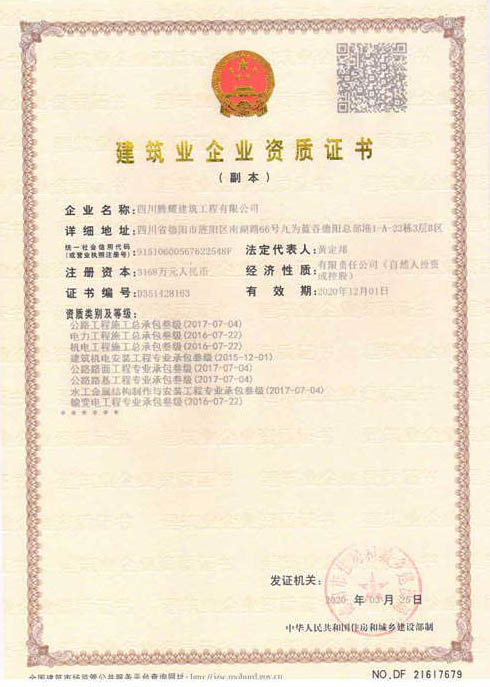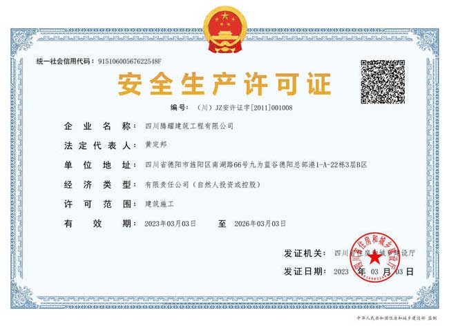 四川騰耀建筑工程有限公司  地址:四川省德陽市旌陽區(qū)南湖路66號九為藍谷德陽總部港1-A-22棟1層  電話:0838-2507855
